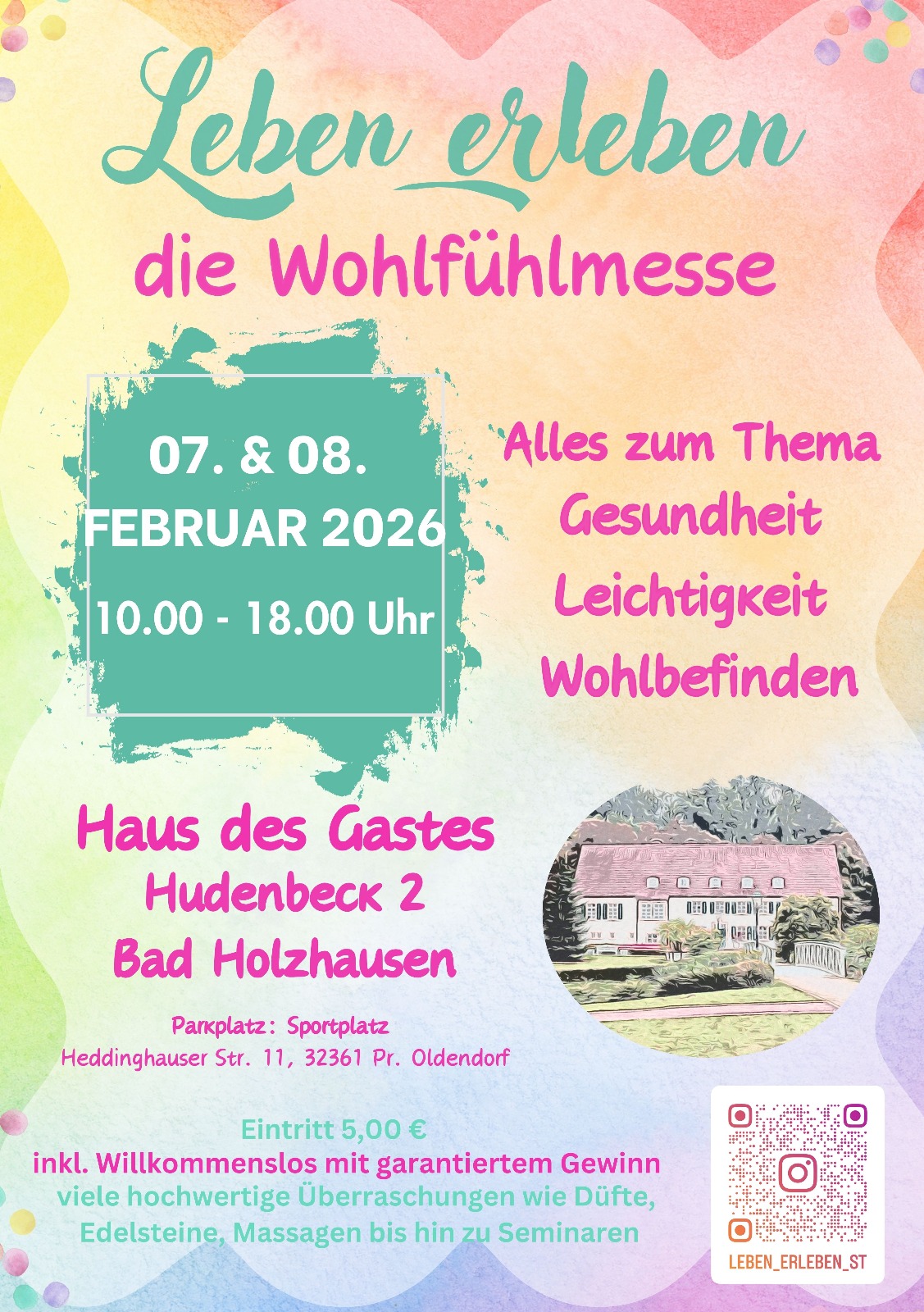 Die Wohlfühlmesse „Leben erleben 2026“ findet zum zweiten mal im Haus des Gastes in Bad Holzhausen statt und ist eine Messe mit den Themen Gesundheit, Leichtigkeit und Wohlbefinden.
